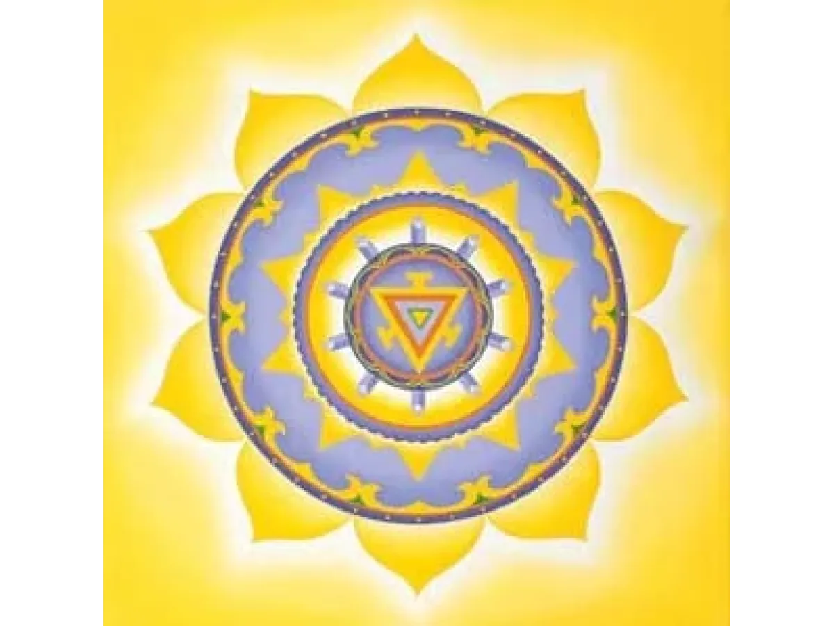 Традиционная символика Манипуры включает жёлтый цвет, треугольник и лепестки лотоса — образы, которые можно понимать как метафоры внутренней структуры человека. Жёлтый оттенок связывают с ощущением тепла, активности и ясности, то есть с состояниями, в которых внимание пробуждается и направляется. Треугольник можно рассматривать как знак движения энергии вверх: от желания к действию, от импульса к пониманию. Лепестки символизируют разные аспекты опыта, которые человек учится соединять в единое целое.